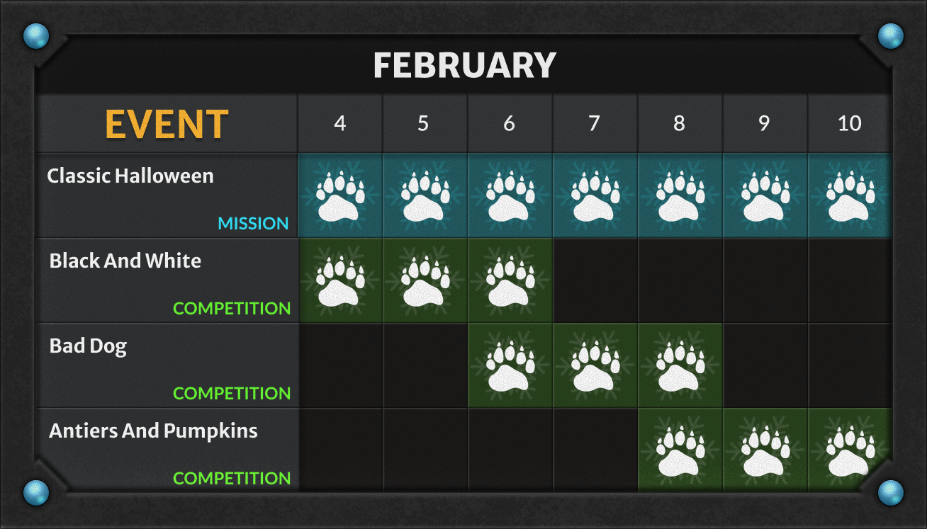 Really, who would want to celebrate Valentine’s Day when you can pick a fight with a vicious bunny and some Hitchcock-inspired birds? But we’ve heard you, stay tuned. Meanwhile, we’ve got the usual Mission and 3 tiered comps spread over the week and the old-style Campaign. So bundle up and head over to Whiterime Ridge for a nice selection of new creepy critters. We couldn’t ignore the werewolves for this, you know how much they like to play with our hunters, and the Wendigos were so excited that some of them turned white. Yes, you have pale and creepy Wendigos hiding in the snow this time. Enjoy them!